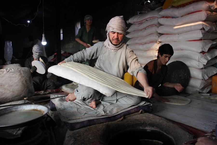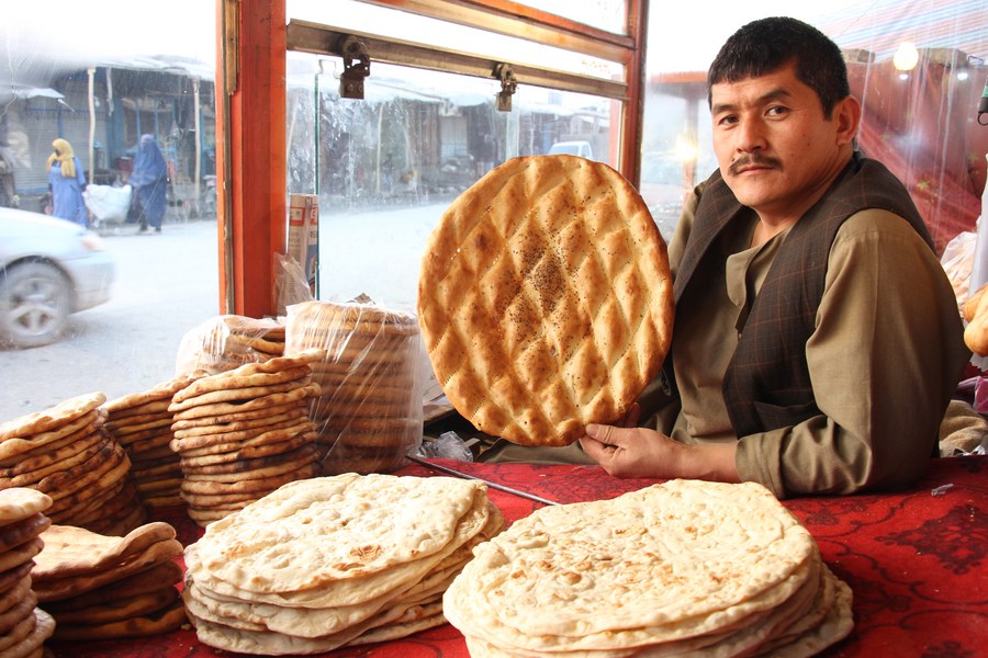 Naan is seen at a bakery in Balkh Province, Afghanistan on Jan. 24, 2023. (Photo by Khibar Momand/Xinhua)