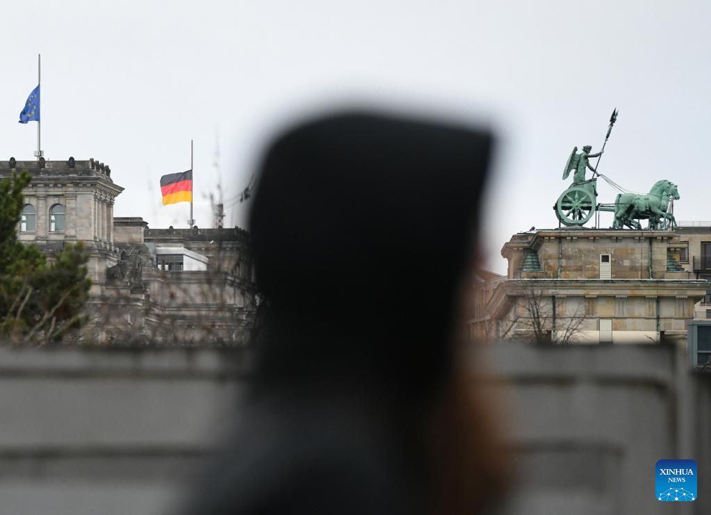A woman walks through the Memorial to the Murdered Jews of Europe in Berlin, Germany, Jan. 27, 2023. The memorial, located in the center of Berlin, was built to remember about 6 million Jews killed by the Nazis during World War II. In 2005, the UN General Assembly adopted a resolution which designated Jan. 27 as the International Day of Commemoration in Memory of the Victims of the Holocaust. (Xinhua/Ren Pengfei)