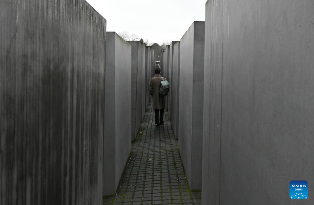 A man visits the Memorial to the Murdered Jews of Europe in Berlin, Germany, Jan. 27, 2023. The memorial, located in the center of Berlin, was built to remember about 6 million Jews killed by the Nazis during World War II. In 2005, the UN General Assembly adopted a resolution which designated Jan. 27 as the International Day of Commemoration in Memory of the Victims of the Holocaust. (Xinhua/Ren Pengfei)