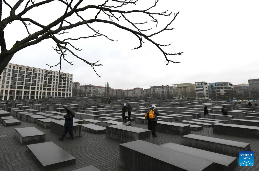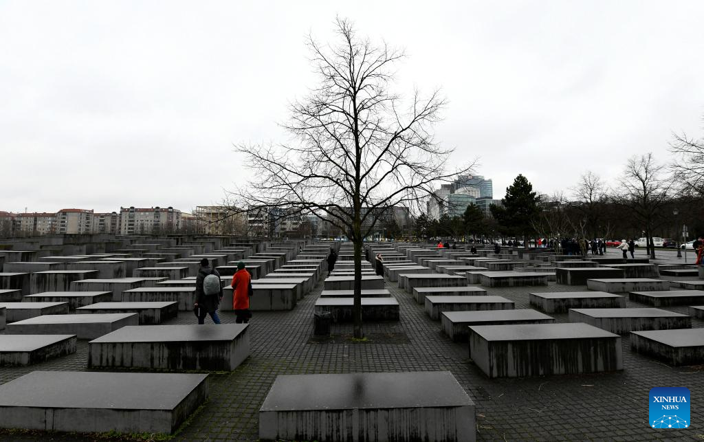 People visit the Memorial to the Murdered Jews of Europe in Berlin, Germany, Jan. 27, 2023. The memorial, located in the center of Berlin, was built to remember about 6 million Jews killed by the Nazis during World War II. In 2005, the UN General Assembly adopted a resolution which designated Jan. 27 as the International Day of Commemoration in Memory of the Victims of the Holocaust. (Xinhua/Ren Pengfei)