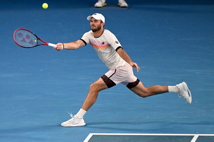 Tommy Paul hits a return during the match. (Xinhua/Guo Lei)
