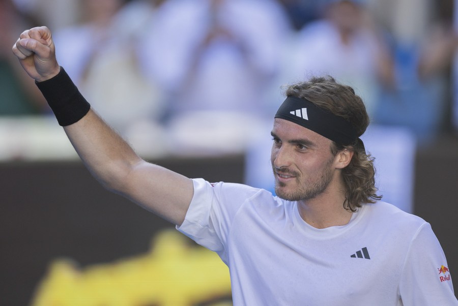 Tsitsipas celebrates after his victory. (Photo by Hu Jingchen/Xinhua)