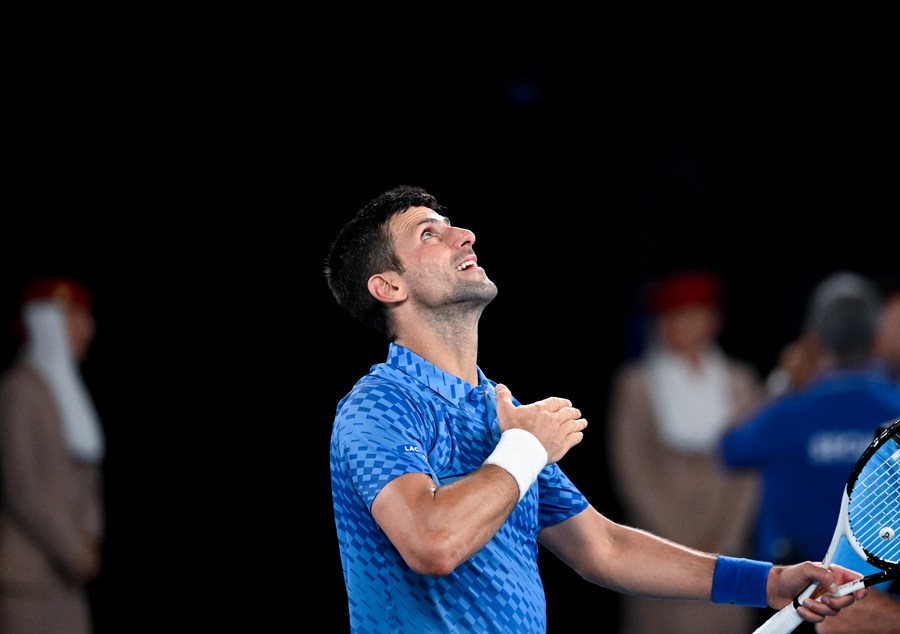 MELBOURNE, Jan. 27 (Xinhua) -- Nine-time champion Novak Djokovic closed in on a record-equalling 22nd Grand Slam title, while third seed Stefanos Tsitsipas is eying a maiden triumph after they won their respective semifinals at the Australian Open on Friday.