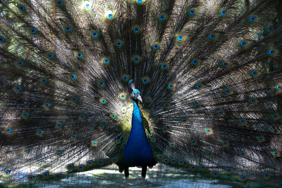 A blue peafowl is seen at the Zoological Gardens in Yangon, Myanmar on Jan. 28, 2023. (Photo by Myo Kyaw Soe/Xinhua)