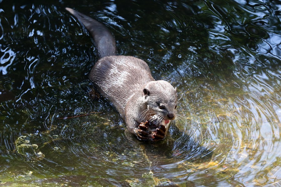 A smooth-coated otter is seen at the Zoological Gardens in Yangon, Myanmar on Jan. 28, 2023. (Photo by Myo Kyaw Soe/Xinhua)■