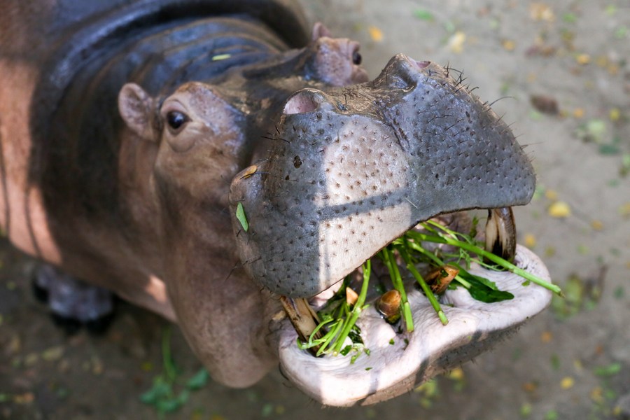 A hippopotamus is seen at the Zoological Gardens in Yangon, Myanmar on Jan. 28, 2023. (Photo by Myo Kyaw Soe/Xinhua)