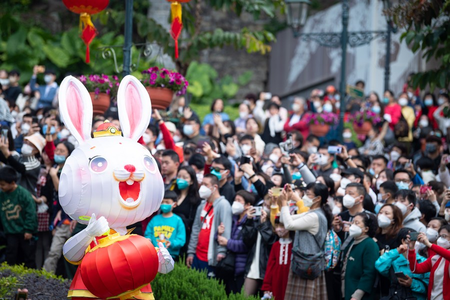 During the three days, the road was dotted with rabbit-themed decorations, artificial vegetation and cloud-shaped lighting equipment. Various performances were also staged.