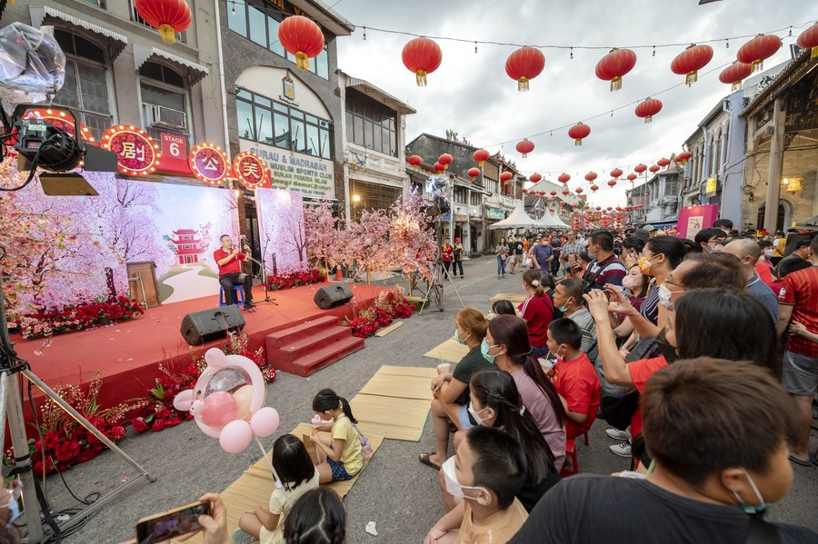 People visit the Penang CNY Celebration in George Town, Penang, Malaysia, Jan. 28, 2023. (Photo by Chong Voon Chung/Xinhua)