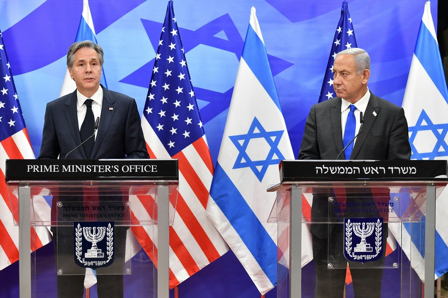 Israeli Prime Minister Benjamin Netanyahu (R) and U.S. Secretary of State Antony Blinken attend a press conference in Jerusalem, on Jan. 30, 2023. (Yoav Ari Dudkevitch/JINI via Xinhua)
