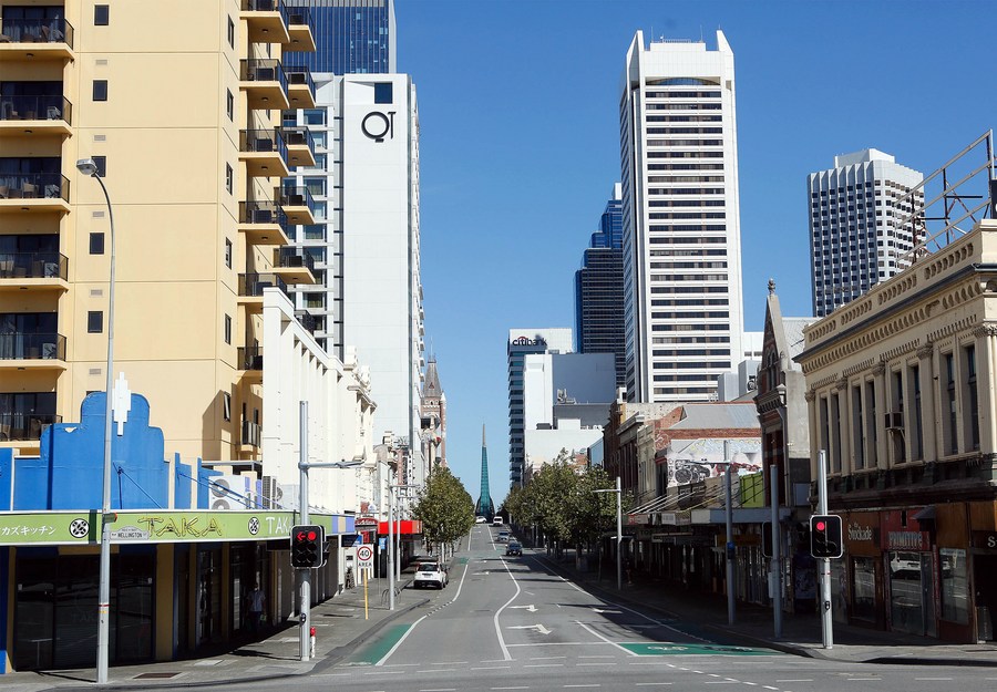 Photo taken on April 24, 2021 shows empty streets in Perth, West Australia. (Photo by Zhou Dan/Xinhua)