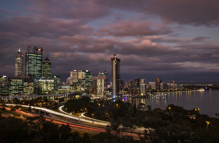 Photo taken on June 15, 2022 shows the city view of Perth, Australia. (Xinhua/Bai Xuefei)
