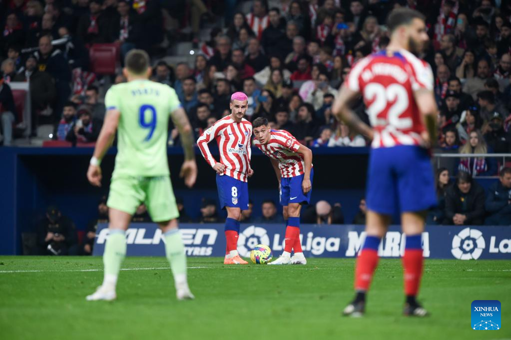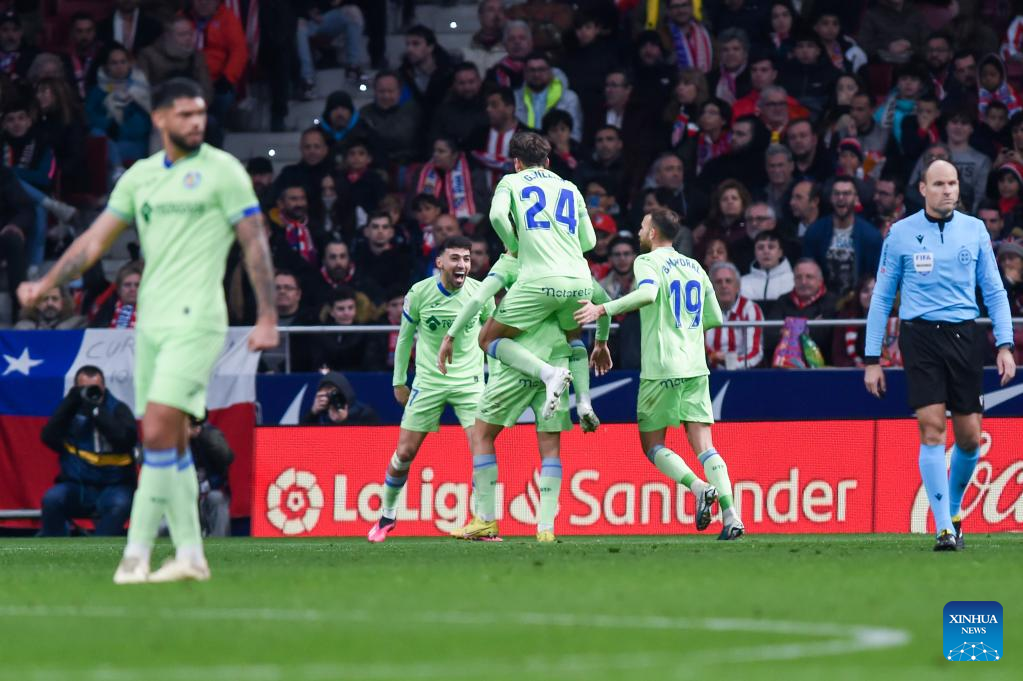 MADRID, Feb. 4 (Xinhua) -- Atletico Madrid dropped two points on Saturday in their home game against Getafe, who kicked off the weekend second from bottom.