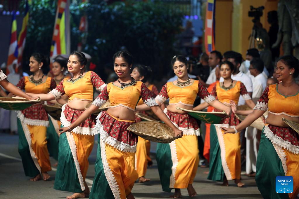 People perform traditional dances during the annual Navam Perahera festival in Colombo, Sri Lanka, on Feb. 5, 2023. (Photo by Ajith Perera/Xinhua)