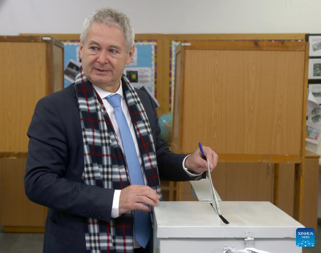 NICOSIA, Feb. 5 (Xinhua) -- Former Cypriot foreign minister Nicos Christodoulides took the lead in Cyprus' presidential election on Sunday, and will face off with Andreas Mavroyiannis, who came second, in a runoff on Feb. 12.