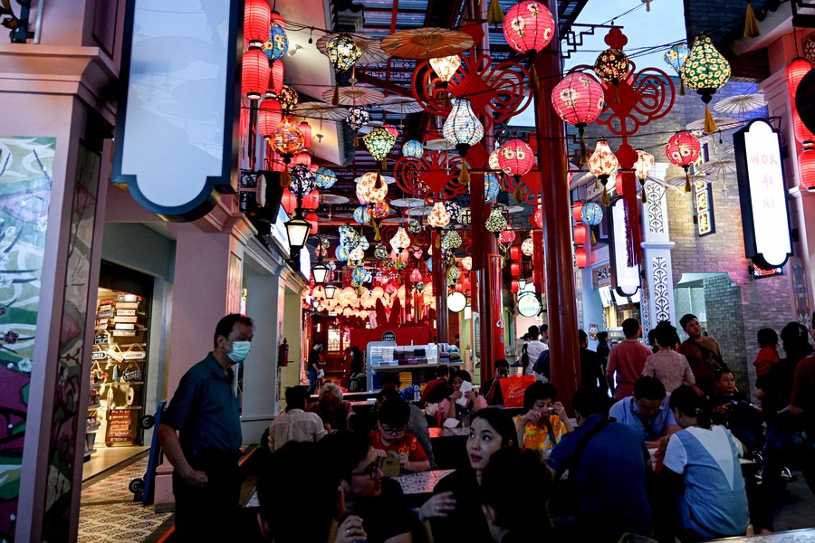 People are seen during the Lantern Festival celebration at Old Shanghai Sedayu City in Kelapa Gading, Jakarta, Indonesia on Feb. 5, 2023. (Agung Kuncahya B./Xinhua)