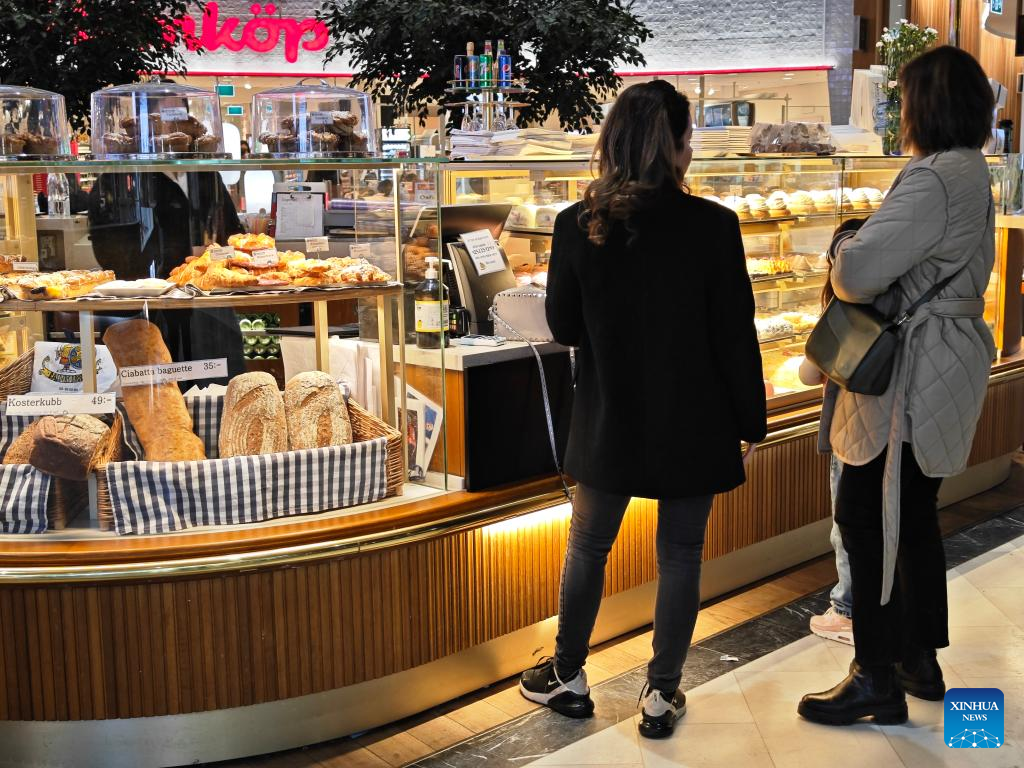 People shop at a store in Stockholm, Sweden, on Feb. 6, 2023. Inflation continues to hover at lofty levels in Sweden with food prices registering the largest monthly increases in a year, according to a report released here on Monday. (Photo by Wei Xuechao/Xinhua)