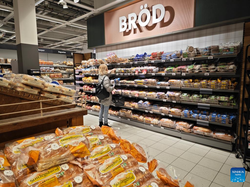A customer shops at a store in Stockholm, Sweden, on Feb. 6, 2023. Inflation continues to hover at lofty levels in Sweden with food prices registering the largest monthly increases in a year, according to a report released here on Monday. (Photo by Wei Xuechao/Xinhua)