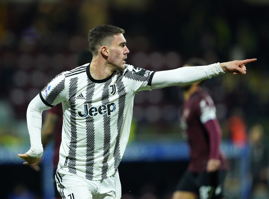 ROME, Feb. 7 (Xinhua) -- Juventus ended their three-game winless streak with a 3-0 win away to Salernitana, as Dusan Vlahovic ended his goal drought by bagging a brace while fellow Serbian Filip Kostic added another.