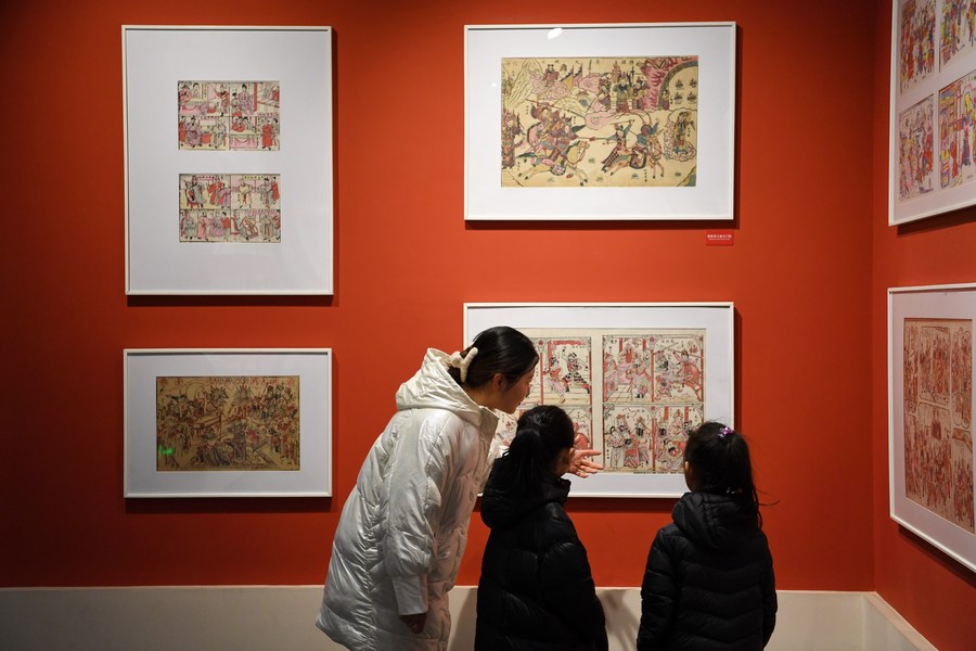 People visit the Wuqiang woodblock new year painting museum in Wuqiang County, north China's Hebei Province, Feb. 3, 2023. (Xinhua/Mu Yu)