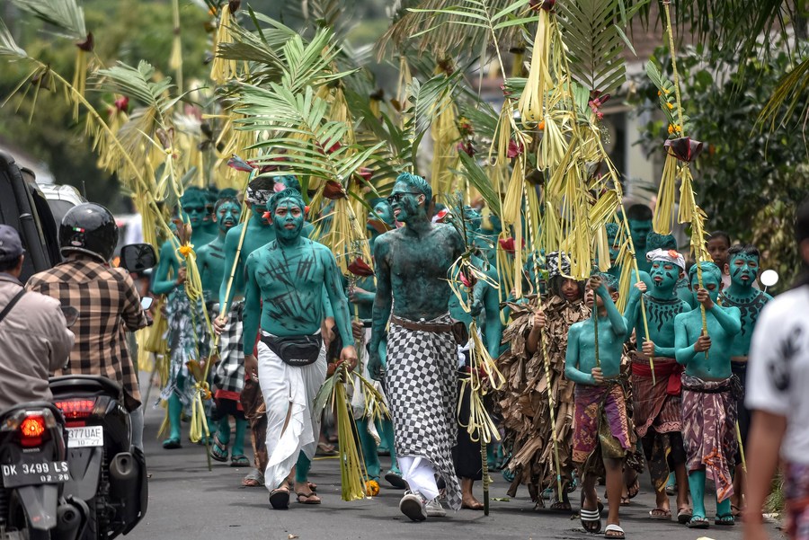 BALI, Indonesia, Feb. 9 (Xinhua) -- Ngerebeg Tradition, which means neutralizing bad characters in the human body and the universe, has been held in Indonesia's Tegallalang village.