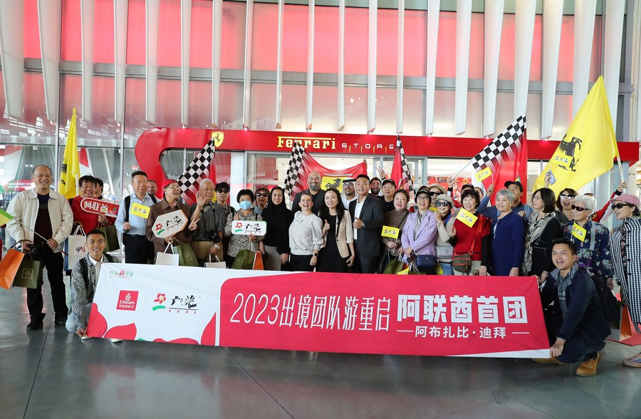 Waving the national flags of China and the United Arab Emirates (UAE), the Chinese tourists were warmly welcomed at the airport and provided smooth check-in services. They also received commemorative gifts and special privileges at the theme park Ferrari World Abu Dhabi.