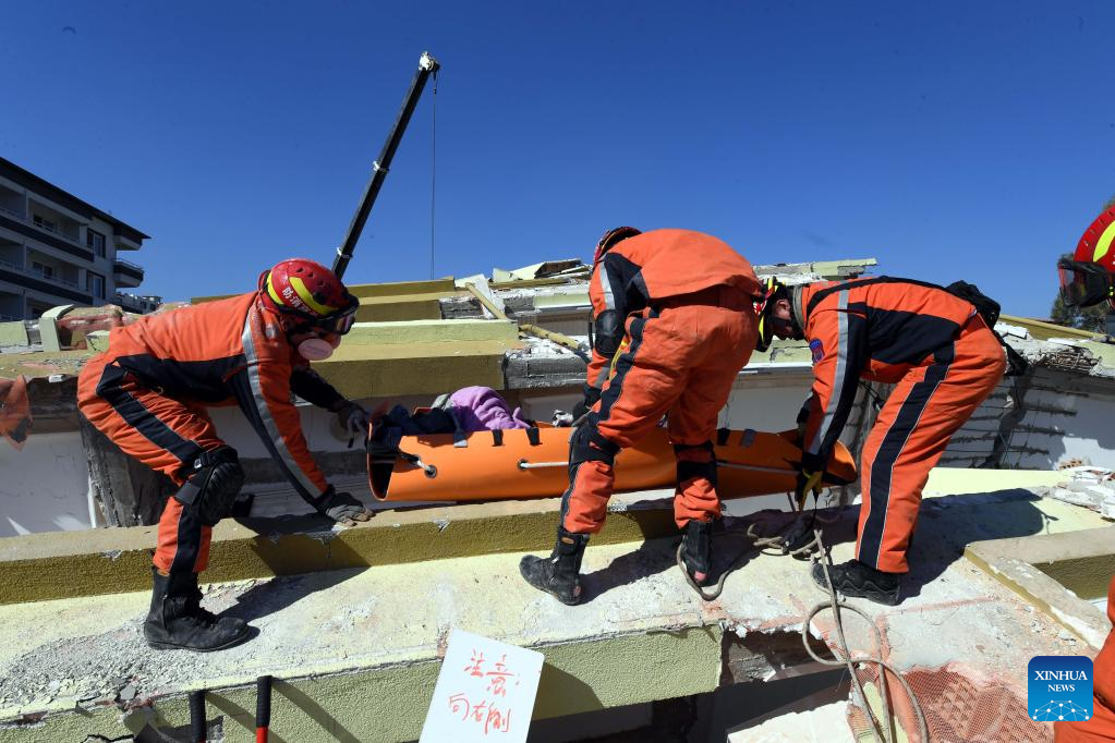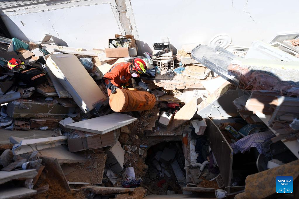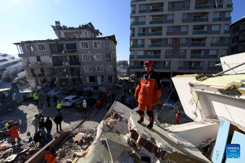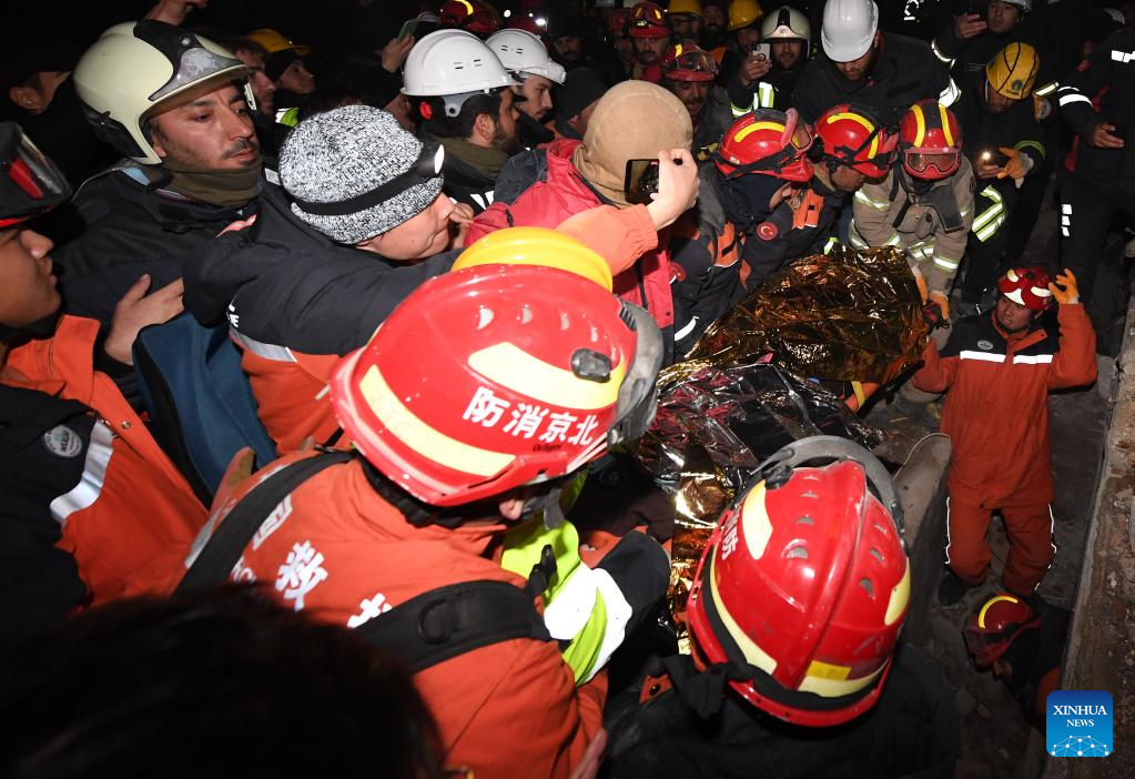 ANKARA, Feb. 9 (Xinhua) -- Rescue teams continued to spare no effort to search for more survivors trapped under the rubble of collapsed buildings on Thursday, though hopes faded quickly on the 4th day after two massive earthquakes jolted Türkiye.