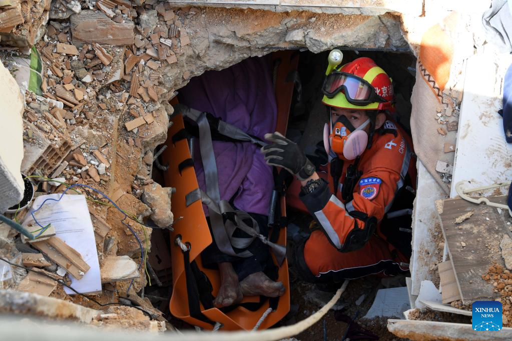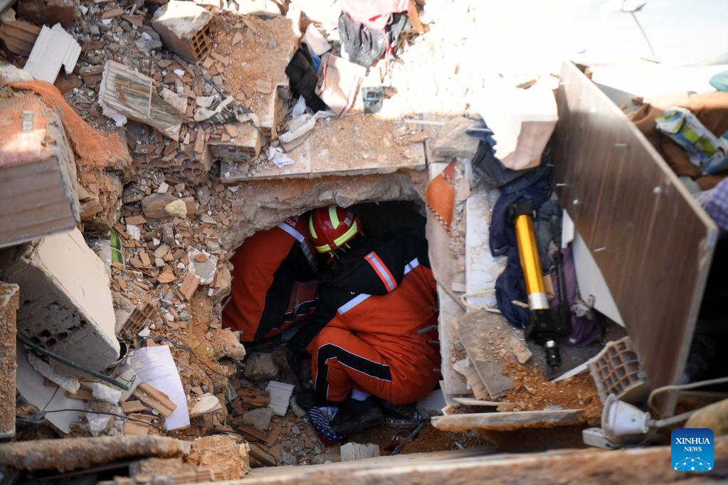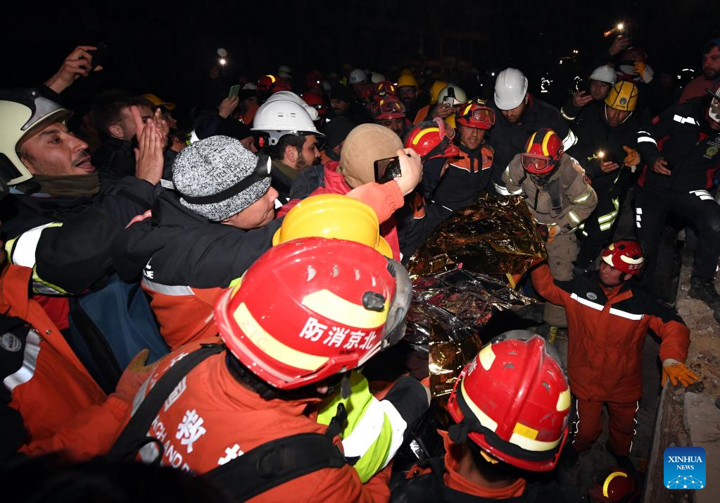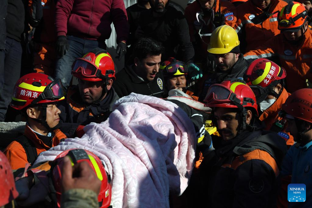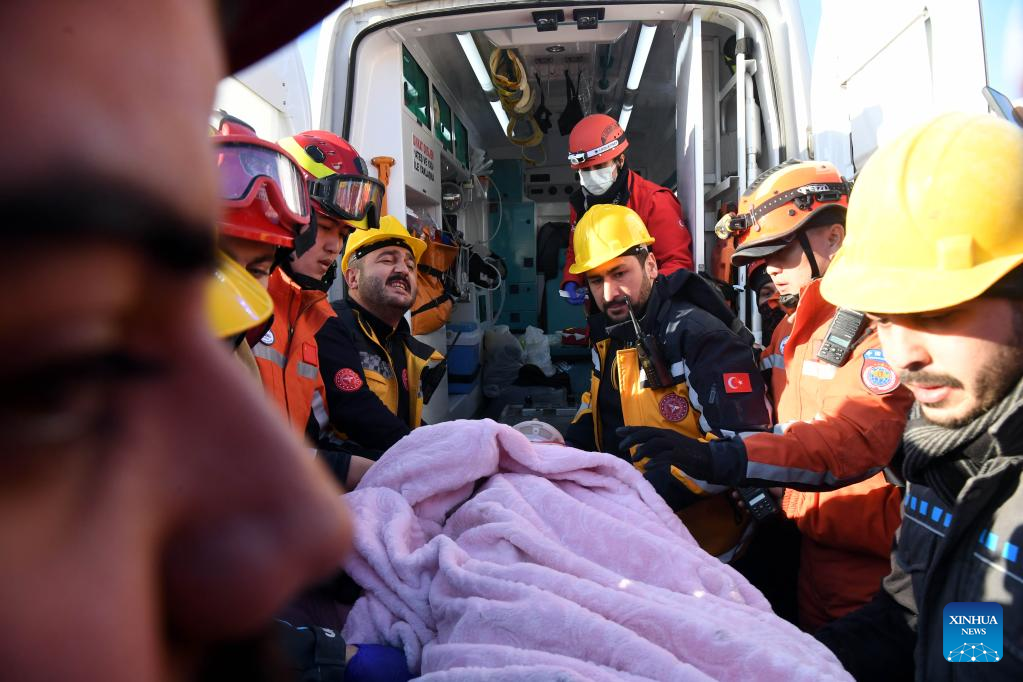 ANKARA, Feb. 9 (Xinhua) -- Rescue teams continued to spare no effort to search for more survivors trapped under the rubble of collapsed buildings on Thursday, though hopes faded quickly on the 4th day after two massive earthquakes jolted Türkiye.