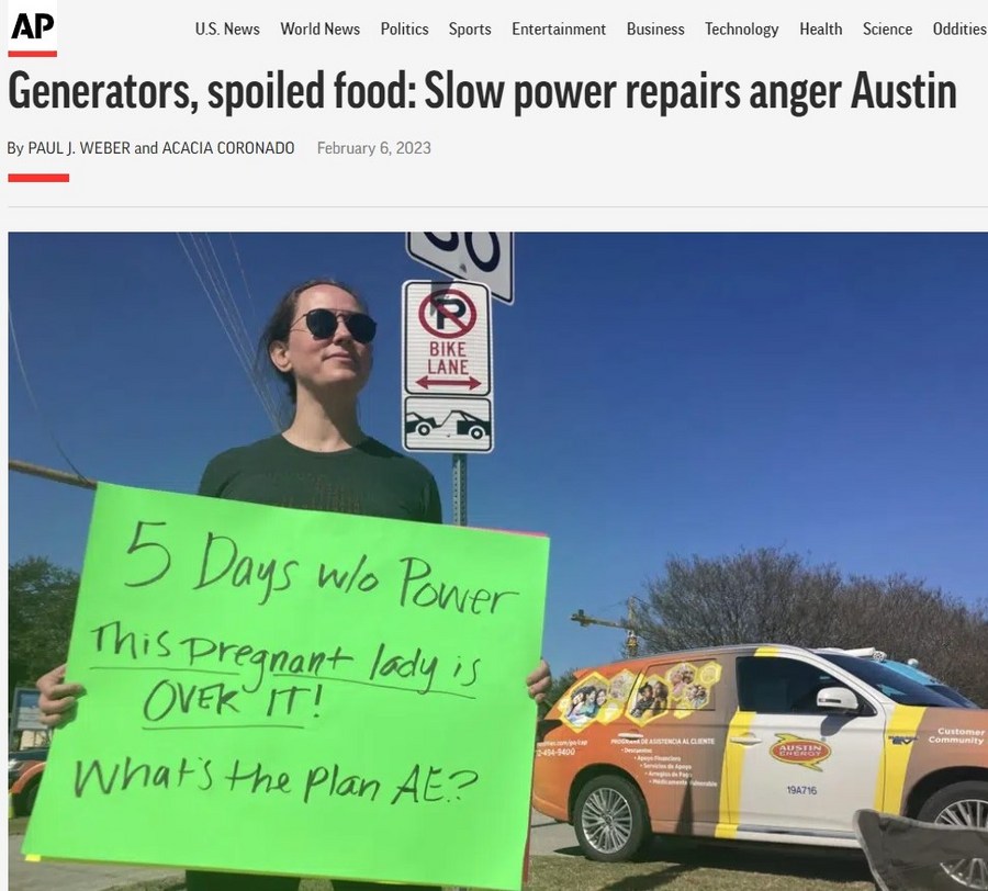 "The boiling frustration over the slow pace of restoring power, and officials repeatedly saying they could not offer timetables for repairs, escalated Monday as the future of Austin's top city executive plunged into jeopardy even as the number of outages continued falling," noted the report.