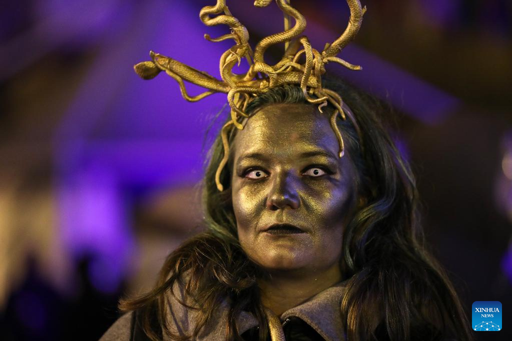 A woman takes part in an opening ceremony of the Samobor Carnival in Samobor, Croatia, on Feb. 10, 2023. The Samobor Carnival is one of the oldest carnivals in Croatia. (Emica Elvedji/PIXSELL via Xinhua)
