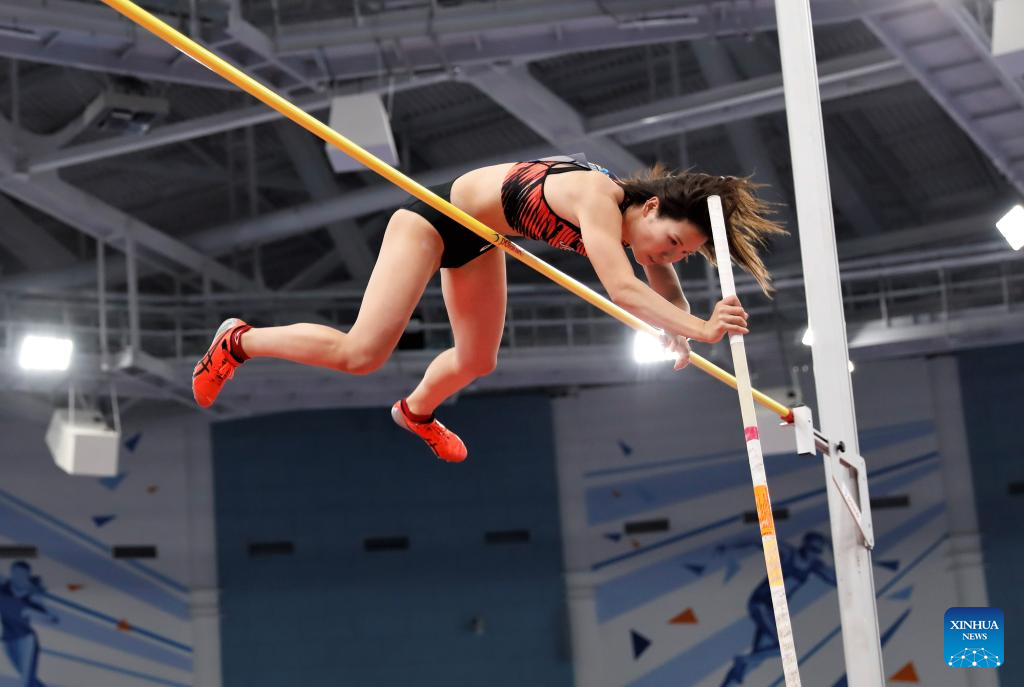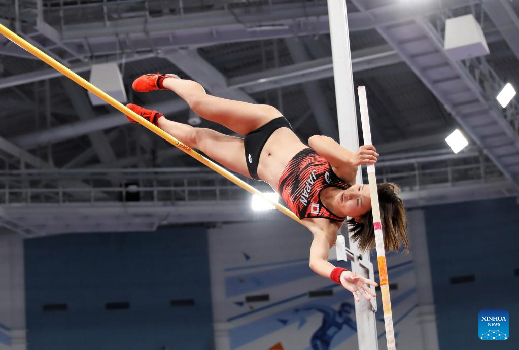 Nasu Mayu of Japan competes during the women's pole vault final at the 10th Asian Indoor Athletics Championships in Astana, Kazakhstan, Feb. 11, 2023. (Photo by Kalizhan Ospanov/Xinhua)