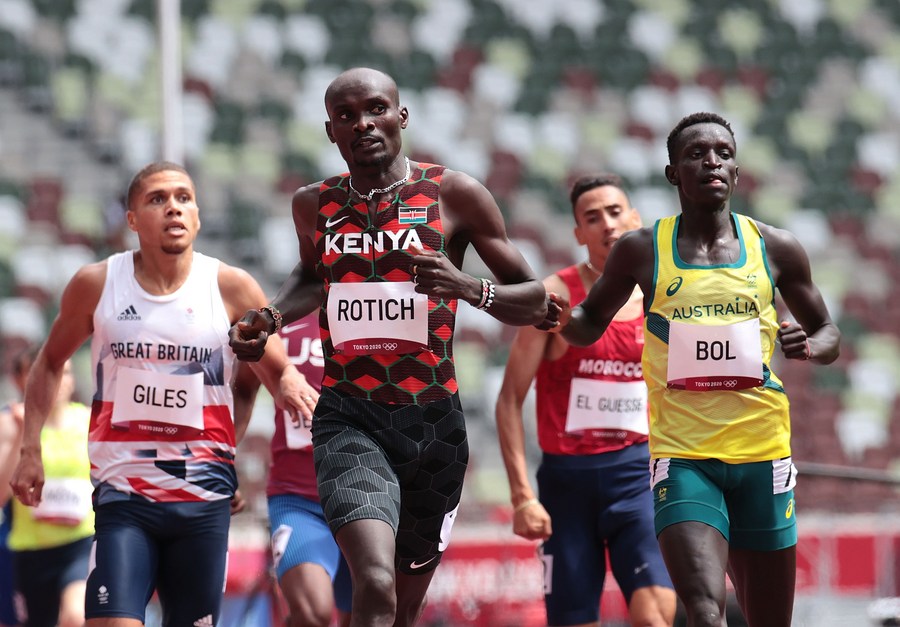 Peter Bol (2nd R) competes during the men's 800m heat at Tokyo 2020 Olympic Games, in Tokyo, Japan, July 31, 2021. (Xinhua/Jia Yuchen)
