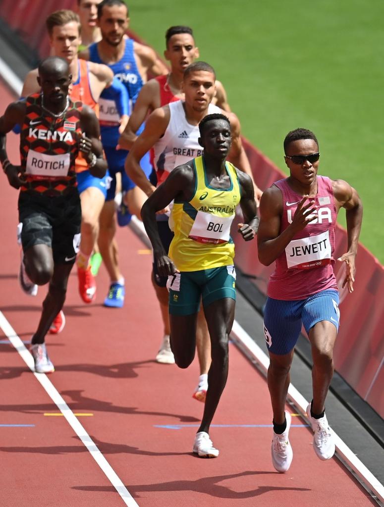 Peter Bol (R) of Australia competes during the men's 800m heat at Tokyo 2020 Olympic Games, in Tokyo, Japan, July 31, 2021. (Xinhua/Li Gang)