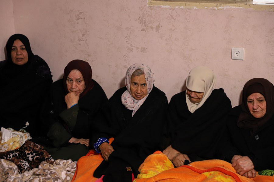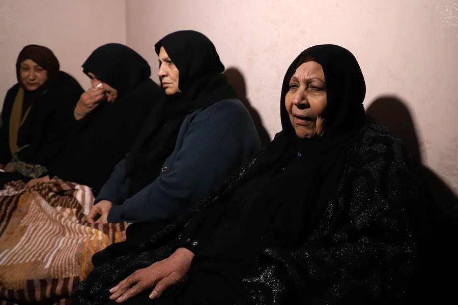 Members of a Palestinian victim's family mourn their relative's death in the earthquake of Türkiye, in Jabalia refugee camp in the northern Gaza Strip, on Feb. 8, 2023. (Photo by Rizek Abdeljawad/Xinhua)