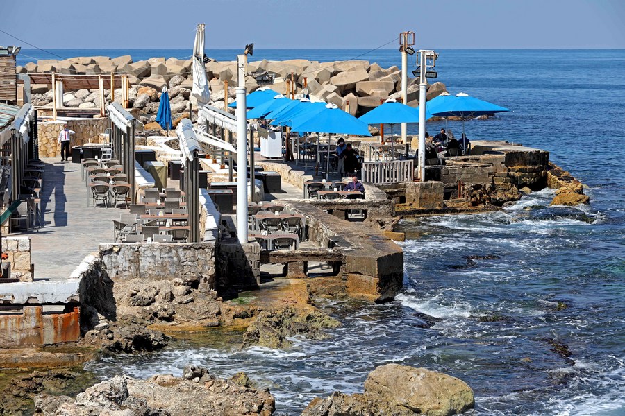 Photo taken on April 13, 2021 shows a coastal restaurant with few guests in Beirut, Lebanon. (Xinhua/Bilal Jawich)