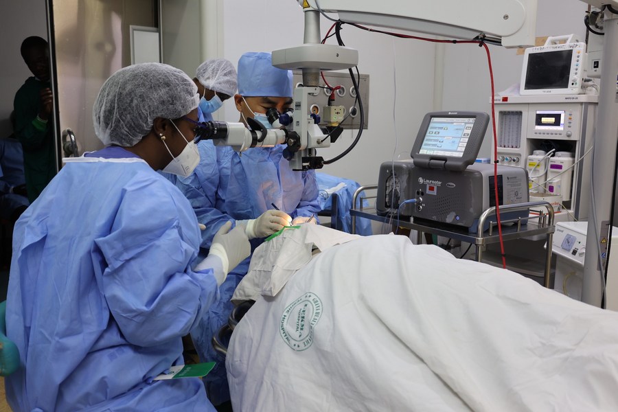 The Chinese medical team stationed at the LEKMA Hospital in Accra, the capital of Ghana, has offered free surgeries since last November to restore the vision of Ghanaians suffering from cataracts.
