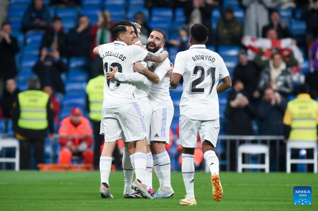 MADRID, Feb. 15 (Xinhua) -- Real Madrid moved back to within eight points of FC Barcelona at the top of La Liga after a comfortable 4-0 win at home to Elche on Wednesday night.