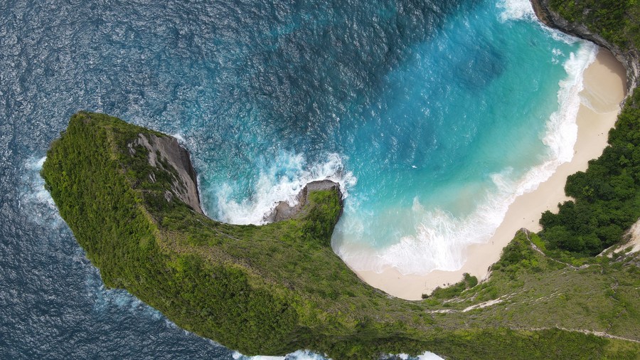 Photo taken on Feb. 14, 2023 shows Kelingking Cliff in Nusa Penida Island of Bali province, Indonesia. (Xinhua/Xu Qin)