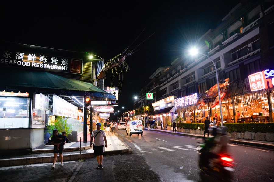 Photo taken on Feb. 13, 2023 shows a street decorated with shop signs in Chinese near Kuta Beach in Bali, Indonesia. (Xinhua/Xu Qin)