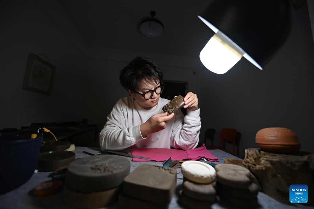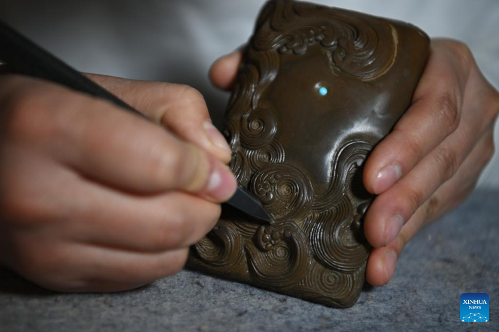 In the future, Lin Xiaolin plans to cooperate with universities and colleges to make Chengni inkstone more popular with stylish designs. (Xinhua/Yang Chenguang)