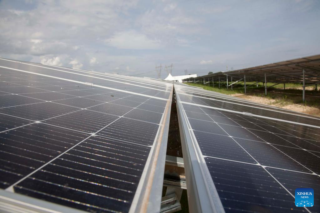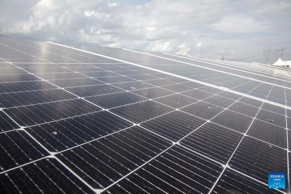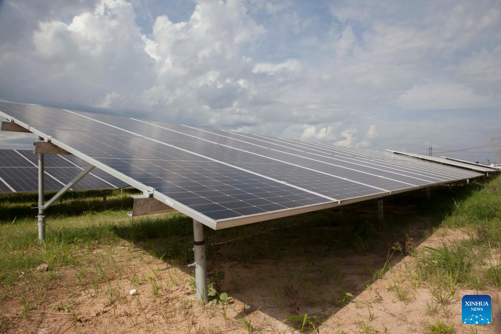 Photo taken on Feb. 15, 2023 shows solar panels at a solar plant in Kitwe, Zambia. Zambia on Wednesday commissioned a solar plant for the production of solar energy as part of efforts to enhance the south African country's electricity generation capacity. (Xinhua/Martin Mbangweta)