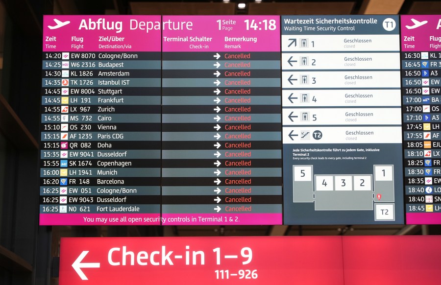 Germany's flag carrier Lufthansa alone had to cancel more than 1,300 flights. There are no departures from Frankfurt and Munich on Friday at all.