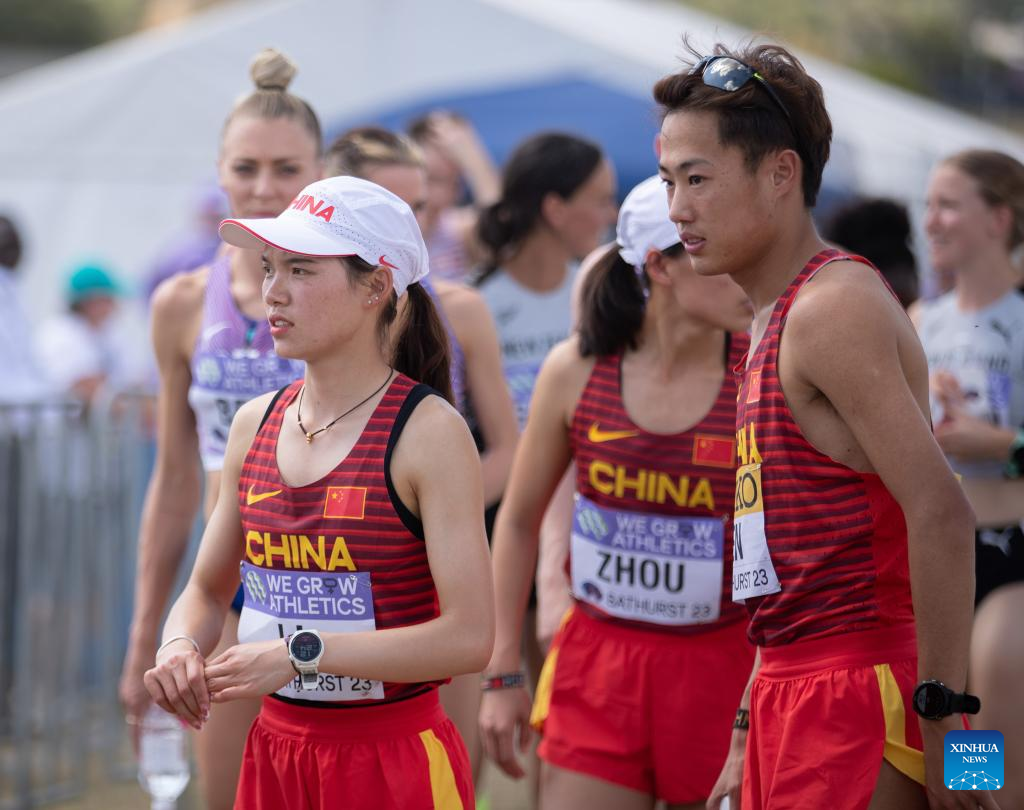 Players of Team China react before the mixed 4x2km relay at the World Athletics Cross Country Championships Bathurst 23 in Bathurst, New South Wales, Australia, on Feb. 18, 2023. (Photo by Hu Jingchen/Xinhua)