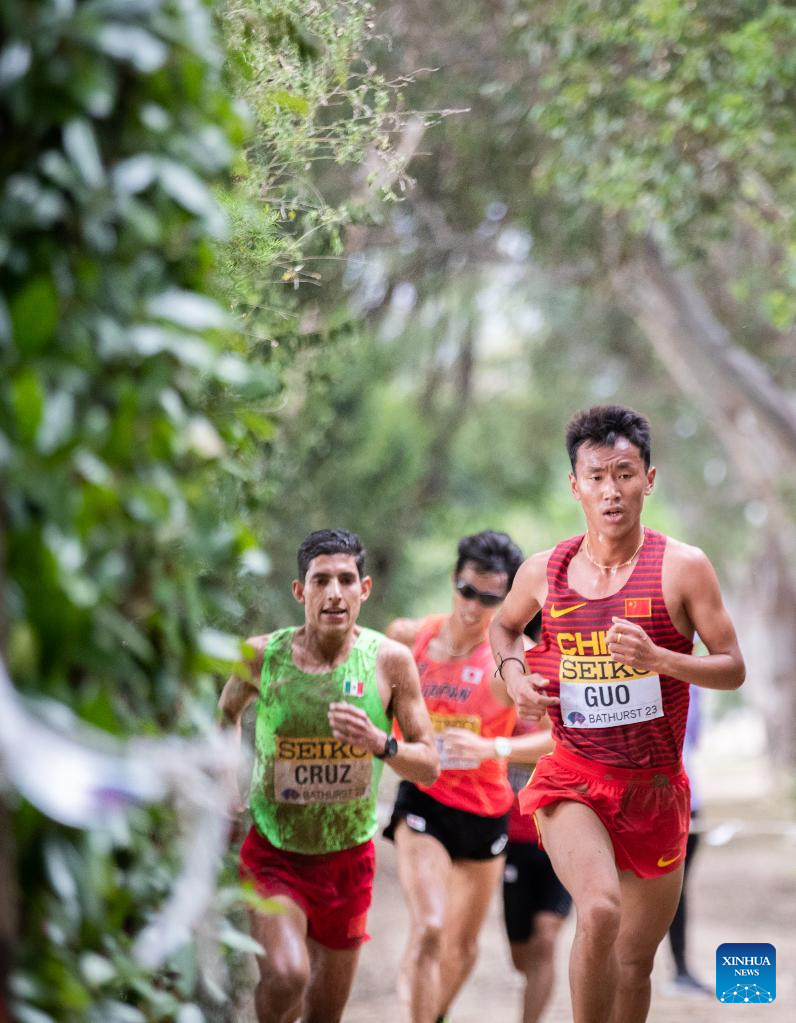 Guo Zhongrui (R) of China competes during the men's 10km race at the World Athletics Cross Country Championships Bathurst 23 in Bathurst, New South Wales, Australia, on Feb. 18, 2023. (Photo by Hu Jingchen/Xinhua)