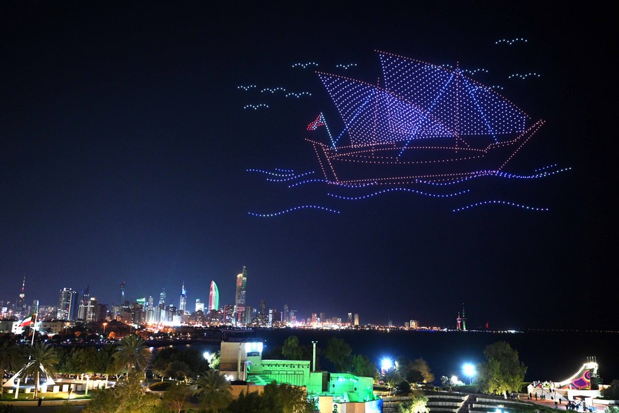 KUWAIT CITY, Feb. 17 (Xinhua) -- Kuwait held a light show performed by about 2,000 drones on Thursday, as part of the celebrations of Kuwait's coming National Day and Liberation Day.