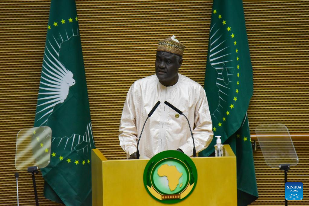 Chairperson of the African Union (AU) Commission Moussa Faki Mahamat addresses the 36th Ordinary Session of the AU Assembly in Addis Ababa, Ethiopia, Feb. 18, 2023. The 36th Ordinary Session of the AU Assembly kicked off on Saturday as African leaders, UN officials and leaders of various international organizations gathered in the Ethiopian capital, Addis Ababa.