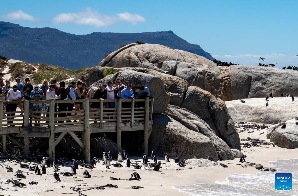 Tourists watch penguins on the beach at Boulders Penguin Colony, Simon's Town, South Africa, Feb. 18, 2023.