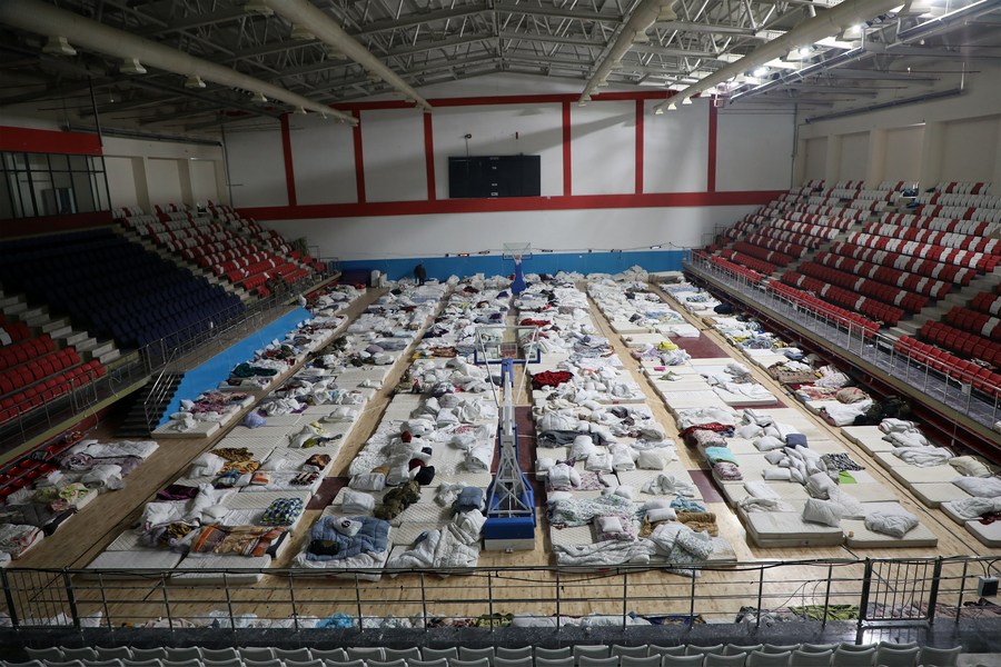 This photo taken on Feb. 19, 2023 shows a temporary shelter in the quake-hit city of Kahramanmaras, Türkiye. (Photo by Mustafa Kaya/Xinhua) ■
