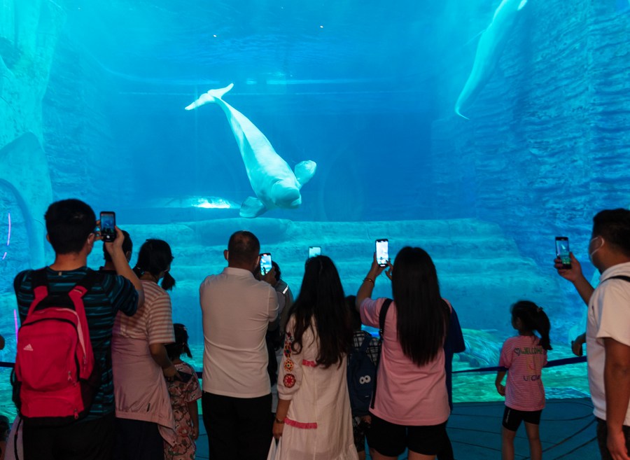 Tourists visit an aquarium in Atlantis Hotel in Sanya, south China's Hainan Province, Dec. 30, 2022. (Photo by Wang Xue/Xinhua)
