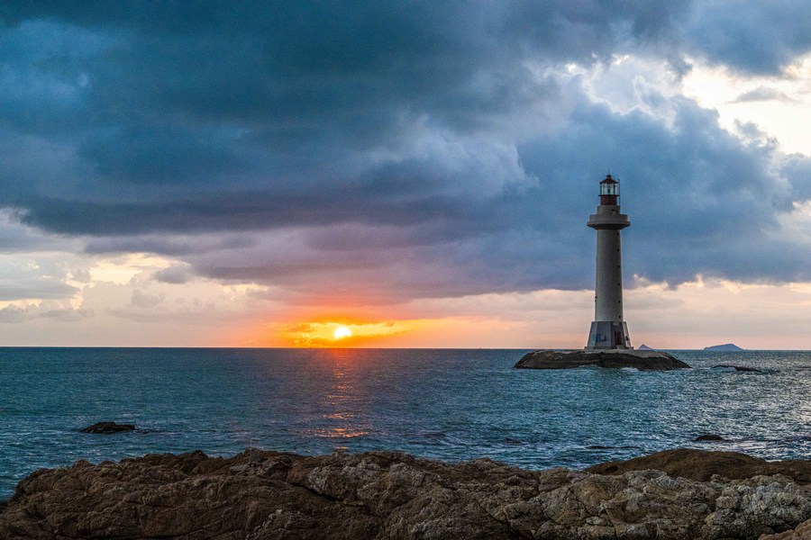 The sunset view is pictured in the Daxiao Dongtian scenic spot of Sanya City, south China's Hainan Province, Oct. 3, 2022. (Xinhua/Pu Xiaoxu)