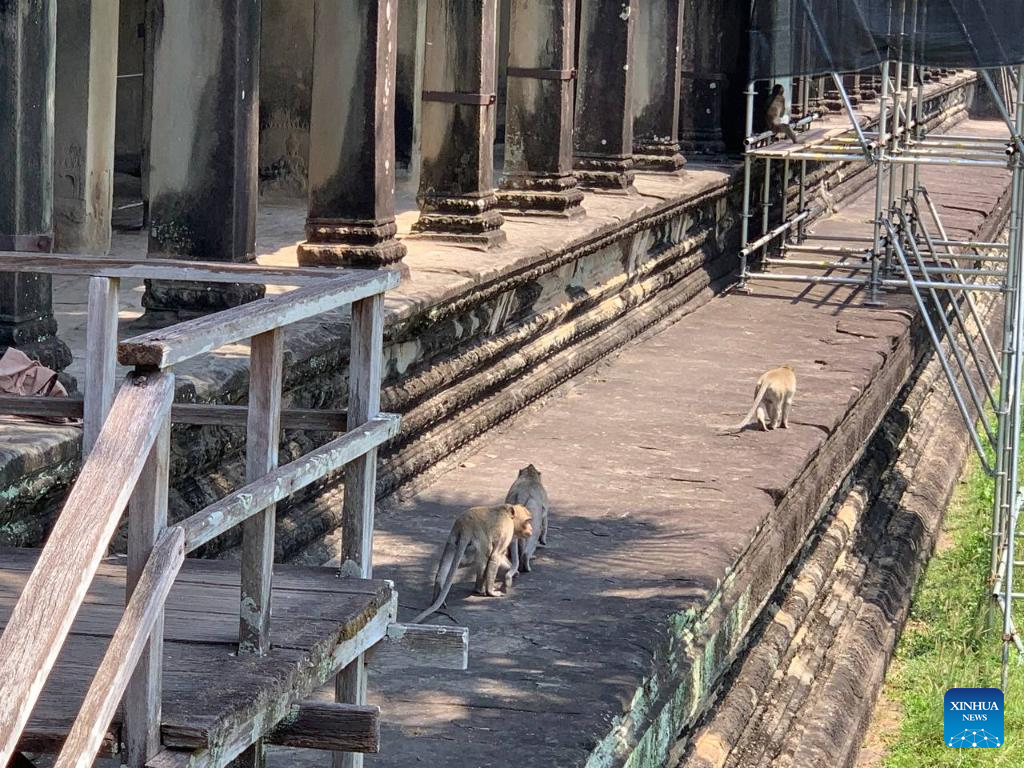 PHNOM PENH, Feb. 22 (Xinhua) -- Throngs of monkeys living in Cambodia's famed Angkor Archeological Park are posing a risk to tourists and temples, a Cambodian government agency said on Wednesday.